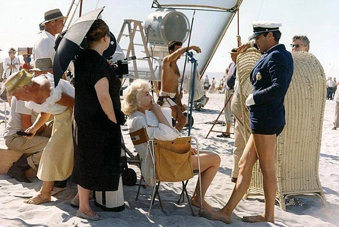 Мэрилин Монро, Тони Кертис и Джек Леммон на съёмках
