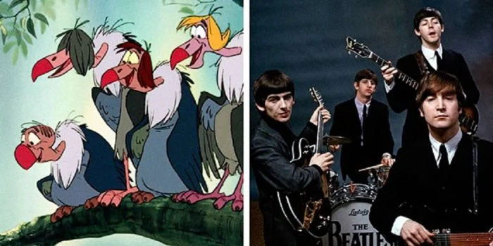 8. Стервятники из "Книги джунглей" с фирменными причёсками участников The Beatles