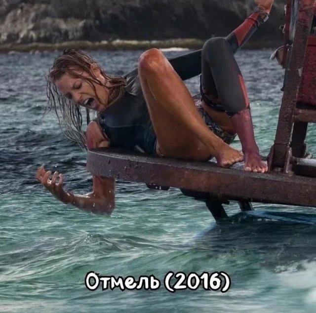 Акула загоняет девушку-серфера на песчаную отмель и не отступит до тех пор, пока не получит своё