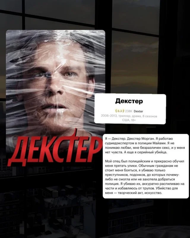 «Декстер» — культовая история судебного эксперта, который охотится на других преступников.