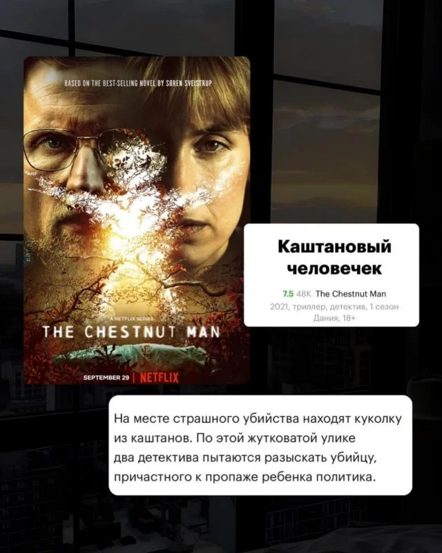 «Каштановый человечек» — криминальная драма о преступнике, оставляющем фигурки из каштанов на месте убийств.