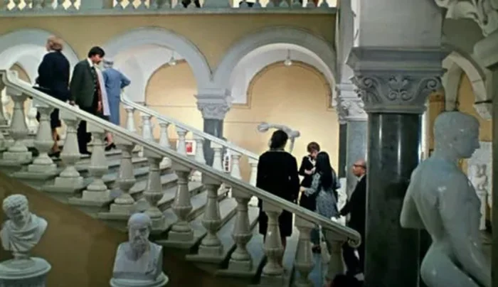 12. Сам фильм в основном снимали во Львове, но музейные сцены снимались в Москве, причем сразу в трех местах. Лестницу музея снимали в здании журфака МГУ, страшный сон Мячикова снимали в музее изобразительных искусств А.С. Пушкина, ну сцены в музейных залах снимались уже в павильонах студии "Moсфильм".