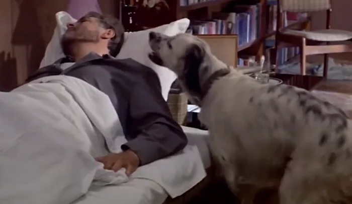 И благодаря этому сцена, когда Иван Иванович корчится от боли в постели, получилась действительно натуральной, ведь на тот момент собака не играла, а действительно переживала за актера.