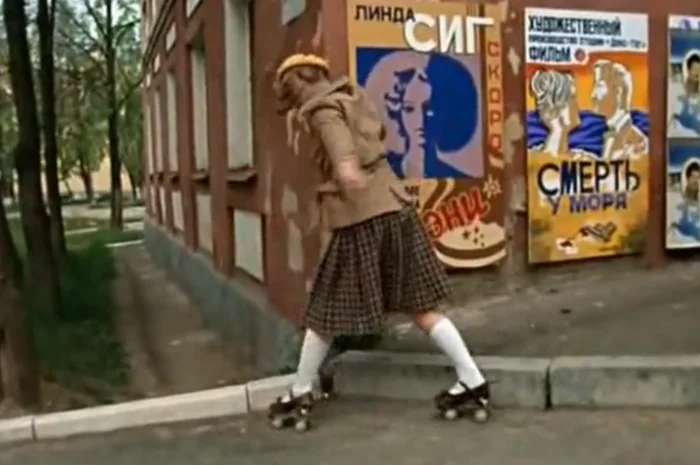 5. До съемок в фильме Ирина Муравьева не умела кататься на роликовых коньках, поэтому ей пришлось учиться это делать с нуля. Уже и невозможно сосчитать, сколько раз падала бедная актриса, пока научилась более менее нормально стоять на коньках, так что те синяки, которые мы видим в кадре, самые что ни на есть настоящие. Да, хоть их и пытались замазывать, но кое-что разглядеть все таки можно.