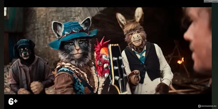 То же касается и остальных - изначальный квартет, в честь которого ТАЩЕМТА, фильм и называется, в мульте стоит на втором плане. В фильме их внезапно сделали личностями, и это получилось отлично! У Кошки загоны на тему собственной самостоятельности и независимости, у Собаки комплесы на тему того что у него нет хозяина, Петух хочет стать крутым и знаменитым, чтобы все знали что он потомок красных драконов и это он поджигает солнце по утрам своим кукареканьем, а Осел - просто омежка, ищущий свой путь.