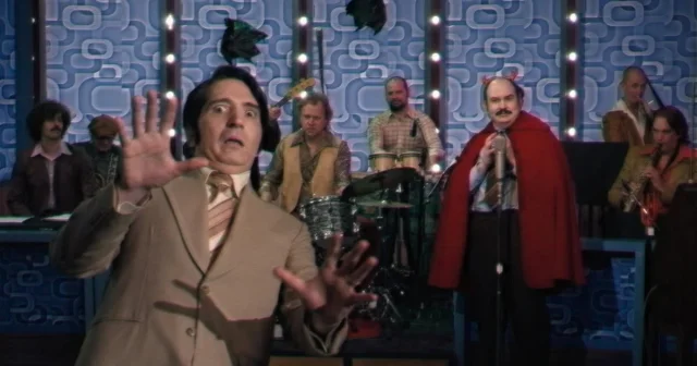 Ужастик, стилизованный под идущее в прямом эфире телешоу из 1970-х. Сначала кажется, что будет банально, потом — что не страшно. Но в последней трети фильм так прижимает, что становится уже не до скепсиса, а сюжет выводит зрителей в закоулки, где они вряд ли ожидали оказаться.