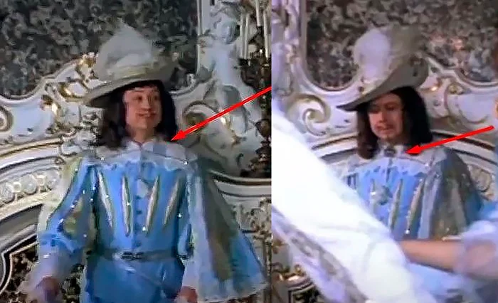 Примерно также происходит и во время разговора Д'Артаньяна с кардиналом Решелье. Прическа опять умудрилась поменяться прямо между кадрами.