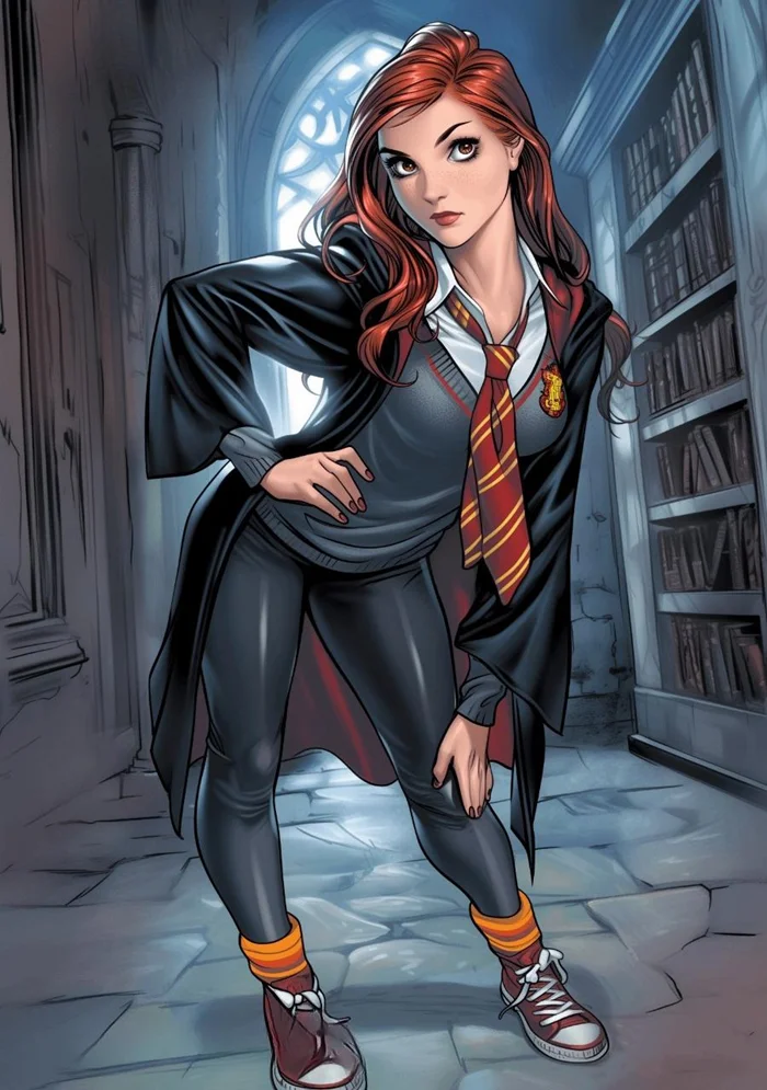 На Reddit набирает популярность очередная мультивселенная: персонажей «Гарри Поттера» с помощью нейросети перенесли на страницы современных комиксов Marvel. Насыщенные цвета, выразительные тени и динамичные позы делают их похожими на супергероев, но при этом все остаются узнаваемыми.