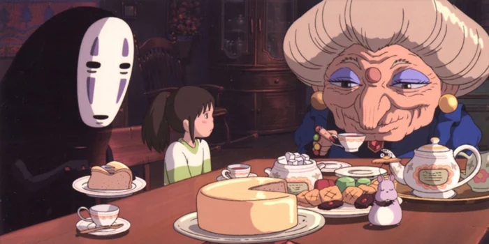 Тихиро вместе с мамой и папой переезжает на машине в новый дом. По дороге семья сбивается с пути и останавливается в странном пустынном городе. Увидев стол, заполненный продуктами, мама и папа девочки набрасываются на еду и внезапно превращаются в свиней. Оказывается, что их заколдовала злобная Юбаба. И теперь Тихиро нужно прислуживать ведьме и придумывать план спасения родных.