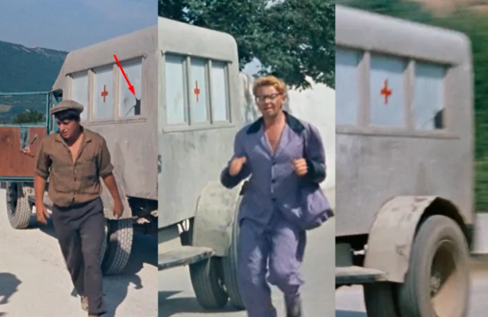 1. На самом старте фильма видим, что стекло на санитарной машине Эдика разбито. Однако когда Эдик забирает Шурика после его побега из психушки, стекло на машине вдруг оказывается целым.