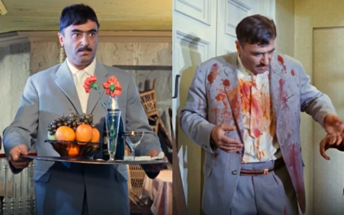 4. В сцене, где Юрий Никулин поет о султане, перед Ниной стоит поднос с едой. Она берет булку и начинает есть, но в следующем кадре поднос оказывается пустым. Какой же у Нины зверский аппетит, если она успела съесть всё за считанные секунды!