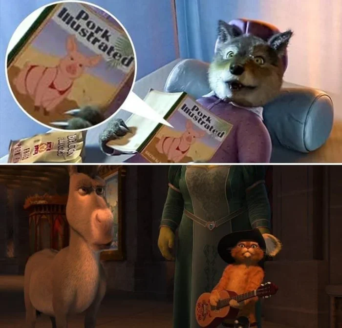 18. В мультфильме «Шрек» есть взрослые отсылки. В этом мультфильме много остроумных шуток, и одна из них — волк, который, находясь в башне принцессы, читает очень интересный журнал. Этот момент настолько быстро проходит, что не все успевают его заметить.