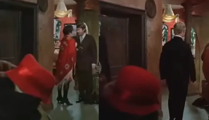 13. Прямо перед приходом жениха нам показывают довольно помятую шляпку невесты. Но когда жених с другом заходят в дом, шляпка уже идеально выпрямлена.