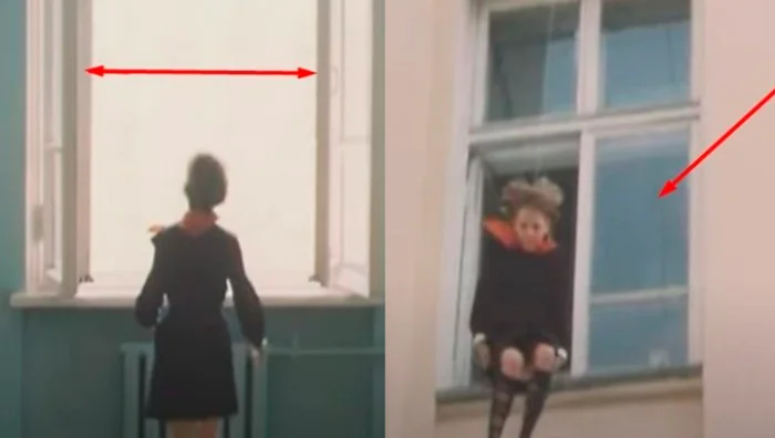 3. Еще по поводу этой сцены: перед тем как Алиса выпрыгнула из окна, мы видим, что оно полностью открыто с внутренней стороны, в то время как снаружи одна из створок уже закрыта.