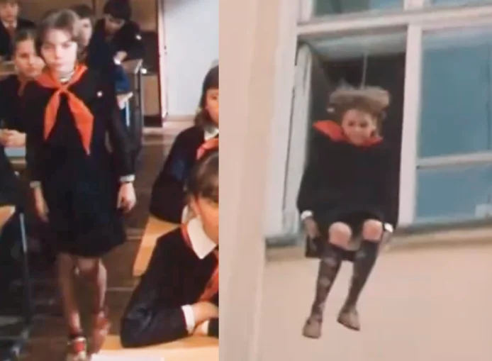 То же самое касается девочки в очках, к которой обратился Крыс. Ее колготки также сменяются на короткие носочки прямо в кадре.