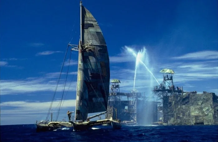 9. Строительство основной плавучей декорации для фильма "Водный мир" (1995) стоило около 22 миллионов долларов – больше, чем бюджет большинства фильмов того времени – и в итоге она была разрушена ураганом во время съемок, что привело к огромному перерасходу бюджета. А фильм ещё и провалился, начав хоронить карьеру Костнера.