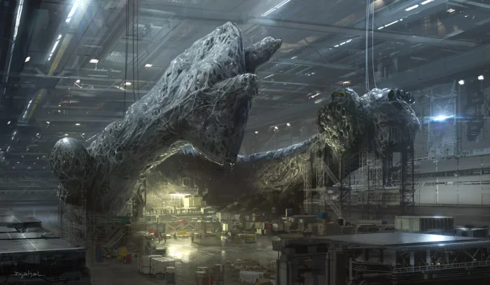 В прошлом году художник Джоффри Туренс (Geoffroy Thoorens), который работал с Бломкампом на этапе предпродакшена, выложил в сеть несколько своих работ. И что мы видим? Наброски сцен, персонажей и существ, которые должны были появиться в фильме.