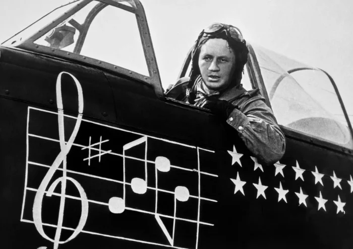 Его эскадрилья получила прозвище "Поющая эскадрилья" из-за наличия хора и джаз-оркестра.