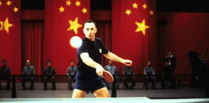 Неожиданный поворот в жизни Форреста — его карьера профессионального игрока в настольный теннис. В этих сценах есть любопытная особенность: герой буквально не моргает во время матчей. Его взгляд с такой концентрацией следует за мячом, что это кажется почти невероятным.