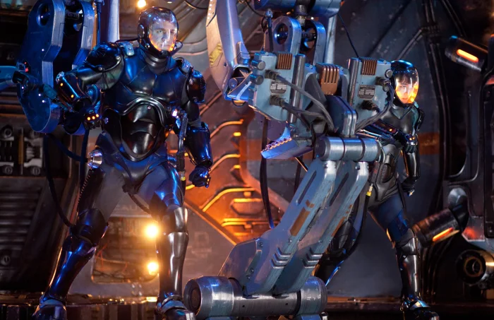 Роботы в фильме управляются через подключение к мозгам пилотов.