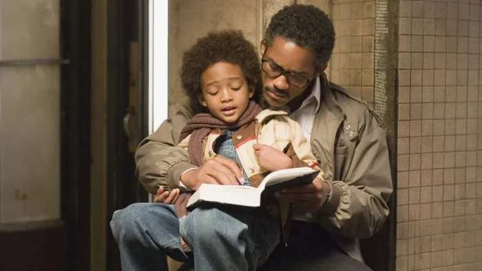 Сюжет. Отец-одиночка Крис Гарднер оказывается на улице — работа продавцом не позволяет ему оплатить аренду квартиры в Сан-Франциско. Чтобы уберечь своего сына от детства в нищете, Гарднер отправляется покорять большой бизнес. Руководитель одной из брокерских фирм решает дать мужчине шанс и приглашает его на полугодовую стажировку. Но у выгодного предложения есть и оборотная сторона — за стажировку Гарднер не получит и цента.