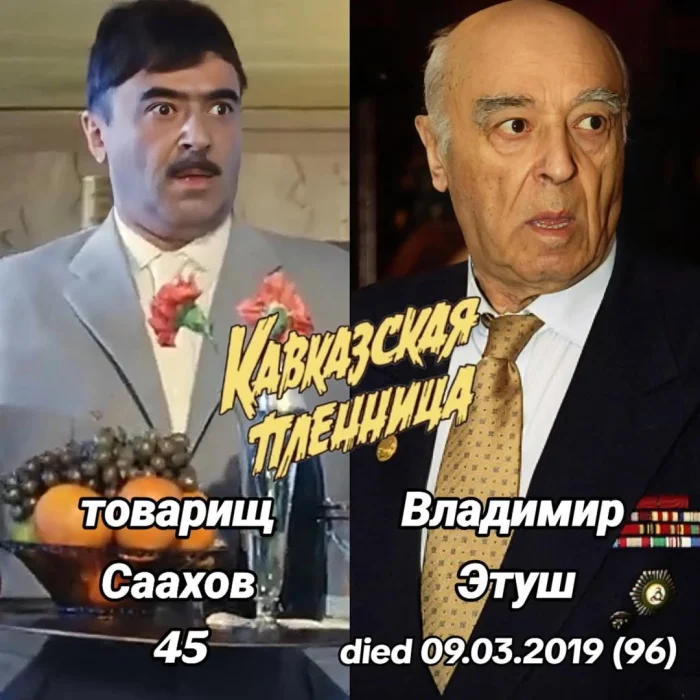 Нельзя не вспомнить и ярких второстепенных персонажей. Владимир Этуш в роли товарища Саахова создал один из самых колоритных образов советского кино. В жизни актёр был интеллигентным и глубоко образованным человеком, преподавал актёрское мастерство и активно работал в театре. Он прожил 96 лет и ушёл из жизни в 2019 году.