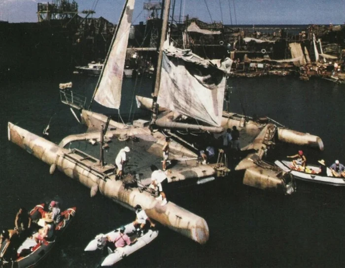 Тримаран главного героя был изготовлен по спецзаказу: хотя он был основан на гоночных тримаранах, такой сложной встроенной механики в реальной жизни не существовало. Костнер настоял на множестве хитрых апгрейдов, чтобы судно выглядело уникальным и подчёркивало готовность героя к любым испытаниям, ссылаясь на «Швейцарскую семью Робинзонов» (1960). Французская компания Lagoon построила две версии: стандартный гоночный тримаран для съёмок с дальнего плана и трансформирующийся для крупных планов.