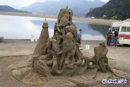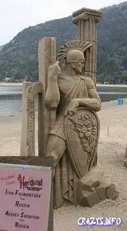 В сосаве нет клейкого раствора. Я слышал что на такие мероприятия песок привозятиз какойто страны он там самый лучший для этого. Скульптуры кул.