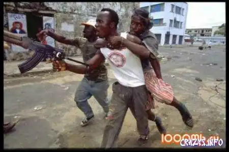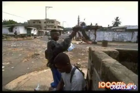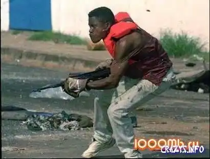 Фото 9 - Можно заметить как серьезно относятся в Либерии к спасению на водах. Этот стильный спасательный жилет не только украшает, но и спасет при случайном падении с моста. От пуль (к сожалению) не спасает, но при такой точности стрельбы это (к счастью) и не актуально. А в строительных рукавицах не горячо держать оружие.
