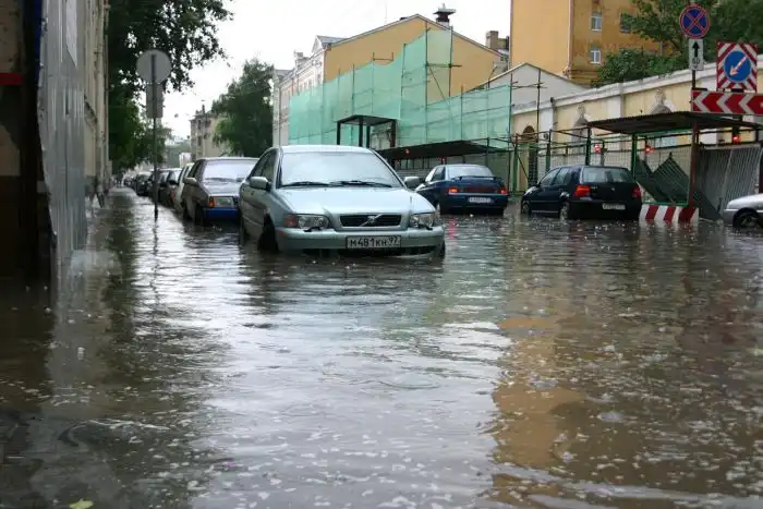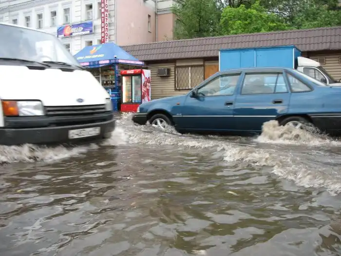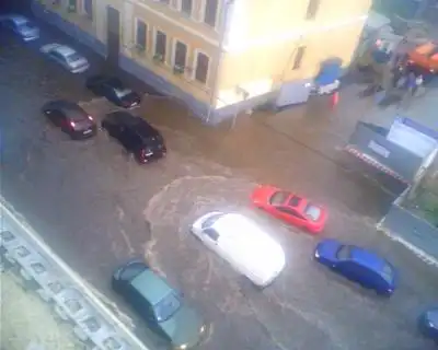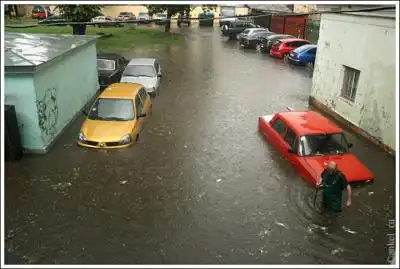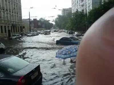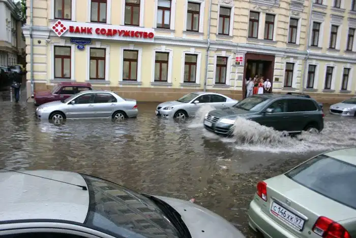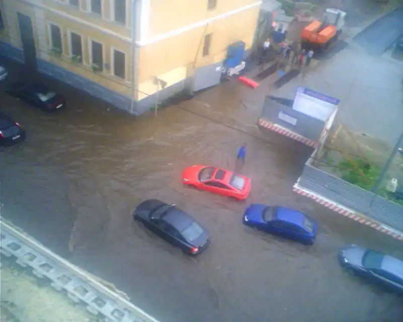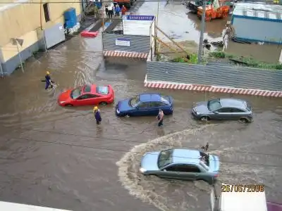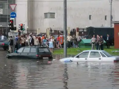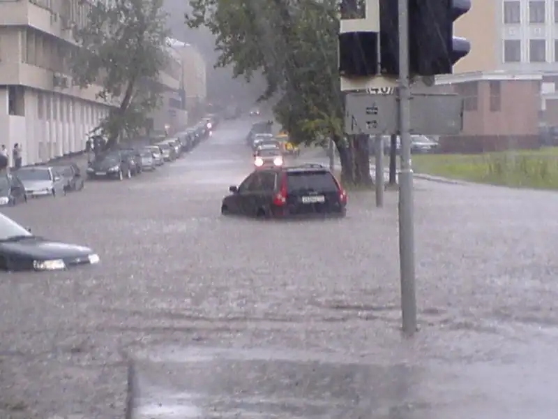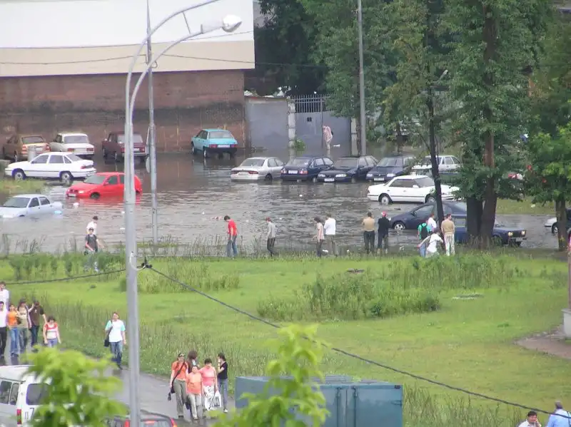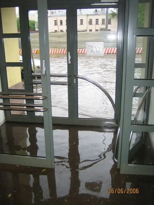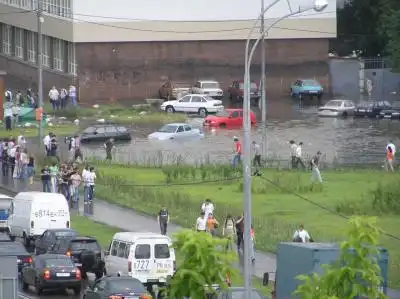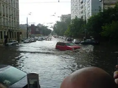 Да просто тама дождик небольшой был в течении пары часов, тока вот ихнии уличные водооттоки да сливы к ентому не приспособлены - улици то большые и длинные, мегалополис как ни как, а воде некуда деваться. Это у нас в Томске вся вода сразу в томь, а у них в офисы )))))