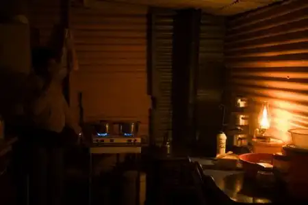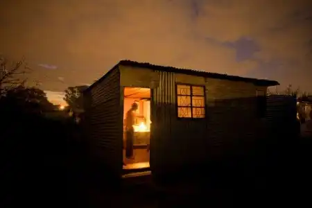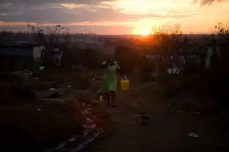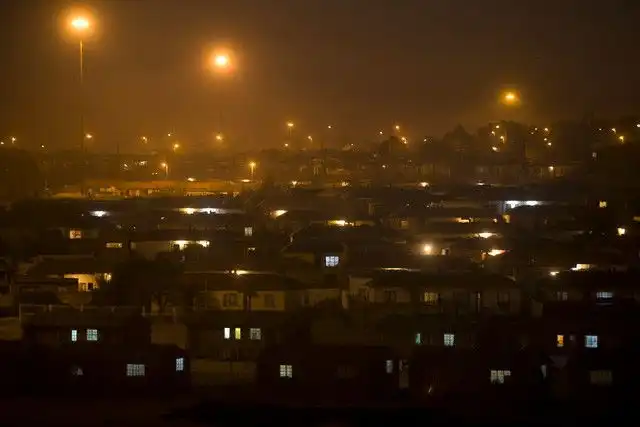 Вечерний туман в Soweto из-за того, что много жгут костры, поскольку людям нужно готовить и греться зимой