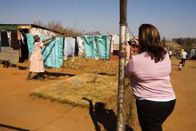 Туристы фотографируют африканских детей