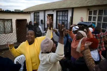 Празднование Soweto. Жители Soweto танцуют, пьют и поют церковные песни