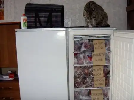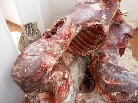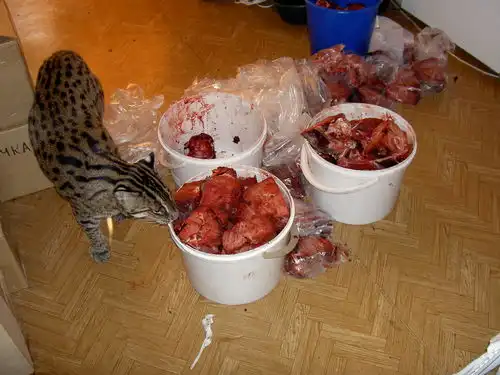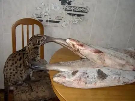У этих хозяев несколько кошек, а эта "непонятная" - дикая порода, их осталось очент мало и стоят такие котики очень дорого. Да, и во еще что, с чего вы взяли, что это мясо сожрет кот? Это запасы хозяев, а Мурзику достанется н-я часть.