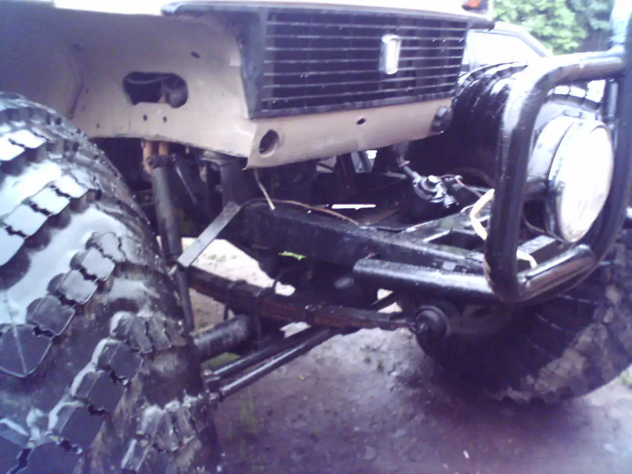 Сделанна на основе "Нивы" с родным двигателем. Рама и мосты от УАЗика. Колёса заказывали в Москве.