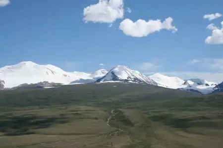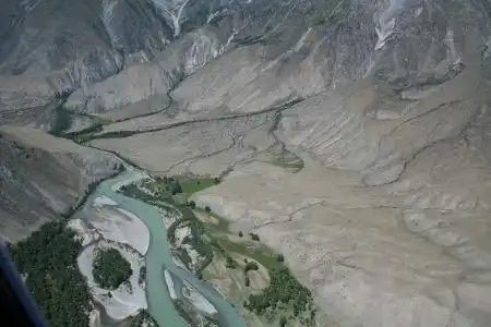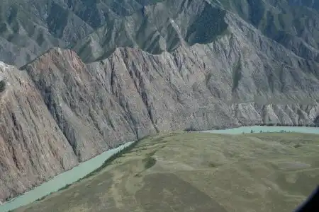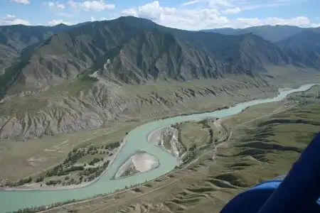 Судя по всему, вылетали с аэропотра Горно-Алтайска вверх по Катуни, потом вверх по Чуе в район Акташа, Северо-Чуйский хребет, с выходом на восточные отроги Южно-Чуйского хребта, к самой границе. Угадал?