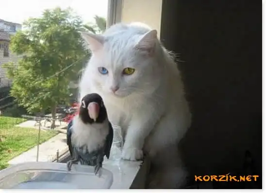 А чё это у кота который на подоконнике на птичку смотри разные зрачки глаз ?