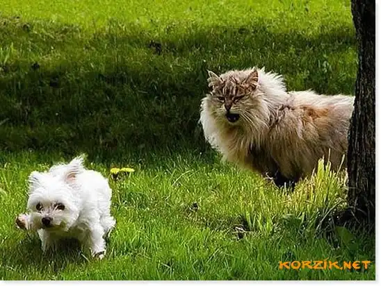 Всегда умиляло, когда изображается любовь кошки и собаки. Прелесть