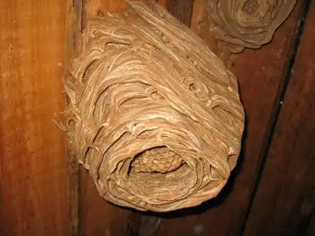 Довольно большое осиное гнездо. Обычно-то такие сжигают в самом зародыше, если на виду.