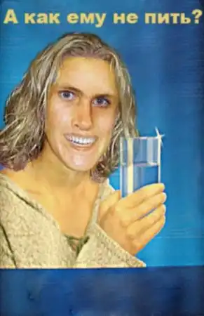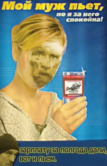 Пьяный бомш с колой и плакатом на заднем фоне - зачот =)