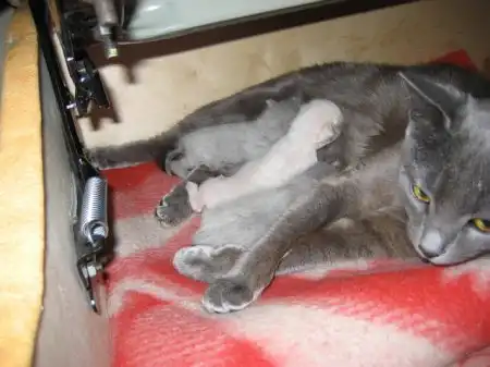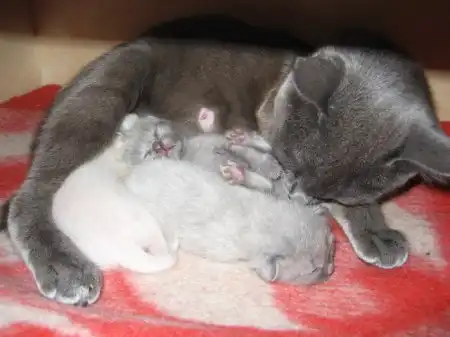 ага, русская голубая!!! белый и серый котята - девочки....и серый самый здоровый - пацан!!! здесь не оч видно, но они клёвые!!! а кисе всего 10 месяцев...ну, по залёту!!!