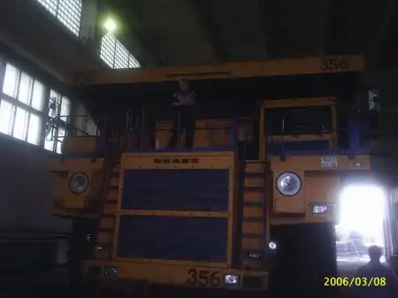 Проект 2005 года - БелАЗ 75600 грузоподьёмностью 320 тонн. Никаких данных о нём пока нет, поскольку ни одно предприятие г.Междуреченска таких автомобилей в наличии не имеет...
