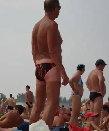 ..а про мужика в трусах у меня так же было только не настолько выраженно...сначала я загорала в стрингах...потом в шортиках...потом в обыкновенных трусишках...а потом как то везь день на солнце провела в шортах..