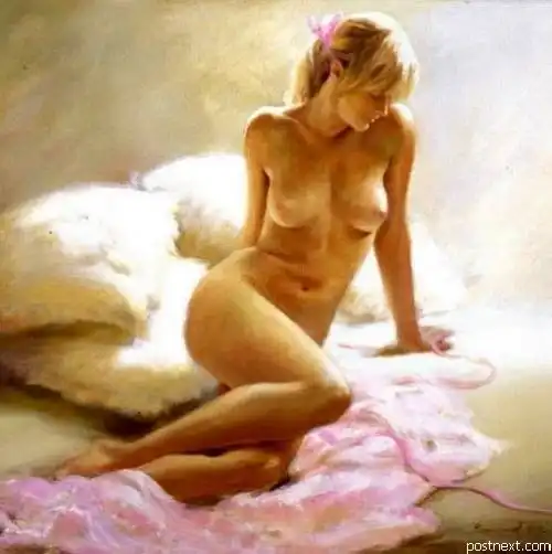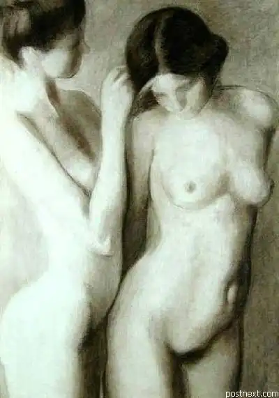 Идеальная форма груди у самой первой девушки заставляет меня хоть и немного, но всё же позавидовать