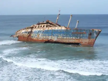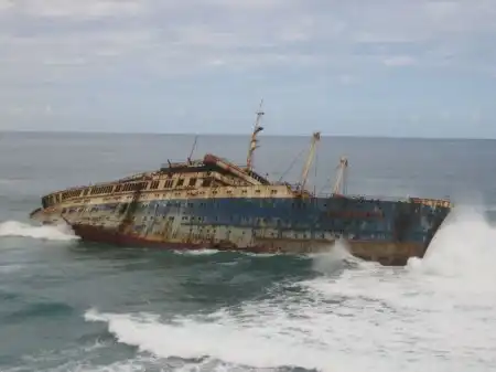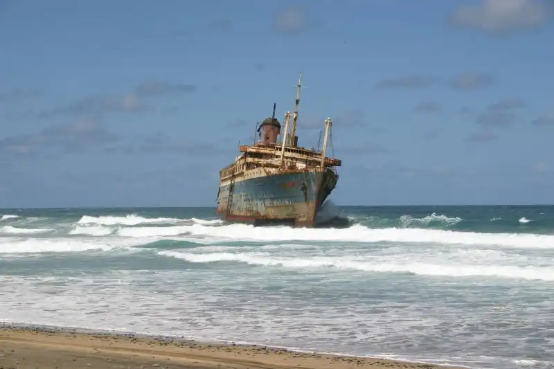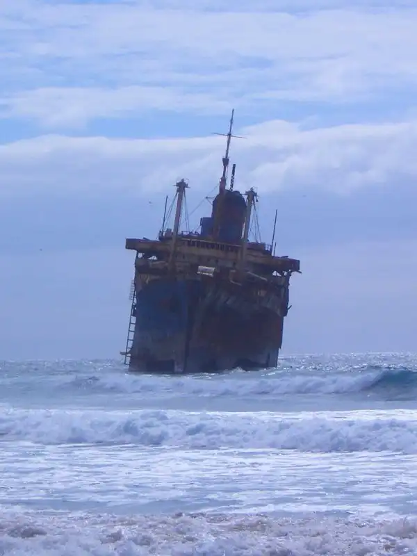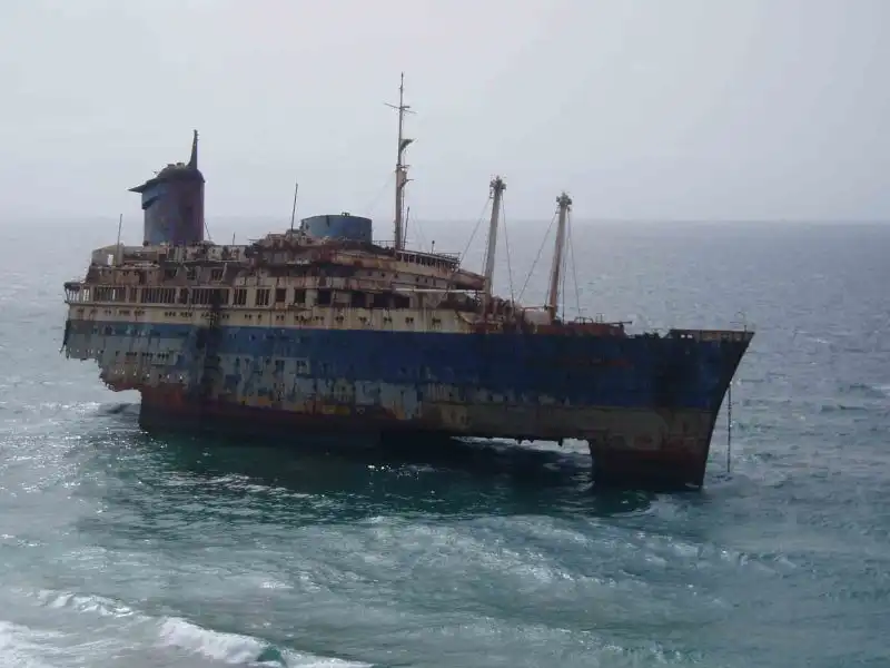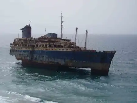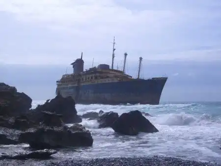 Десятилетия был одним из лучших кораблей в мире.В 1994м во время шторма сел на мель у Канарских островов и раскололся.На данный момент от него осталась только передняя часть.Смотрим