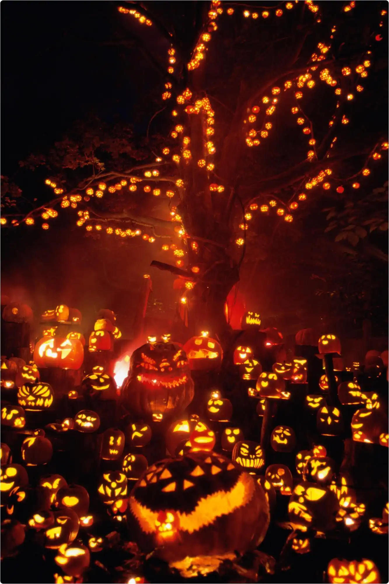 Зловеще и устрашающе в то же время с долей оптимизма, ведь это праздник. Очень понравилась картинка, где много тыков. Игра цветов, прям..