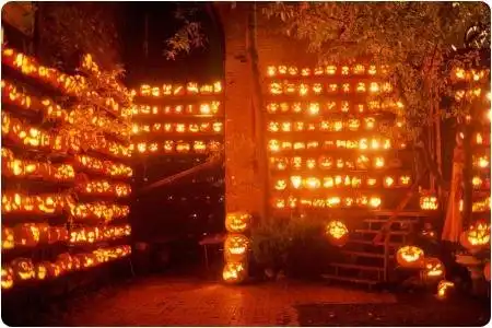 Завораживает своей яркостью... Огонь как никак. Мне пнравилось, где в тыкве вырезан силуэт кошки. Это же как постараться надо, чтоб такая красота получилась. А вообще, не совсем понимаю данный праздник и его ценность для русского народа. По - моему, просто навяывание традиций и ничего больше. Или просто дань традициям Запада.