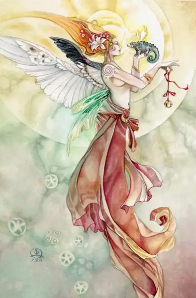 Впечатляющий сплав западных и восточных мотивов. Возвышенность изображённого подчёркивает и акварельная техника рисования - мягкая и ненасыщенная цветом