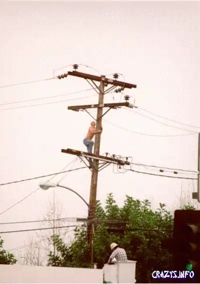 Вообще странный какой-то электрик. Полуголый, без пояса, без каски, без инструмента...Самовольщик какой-то