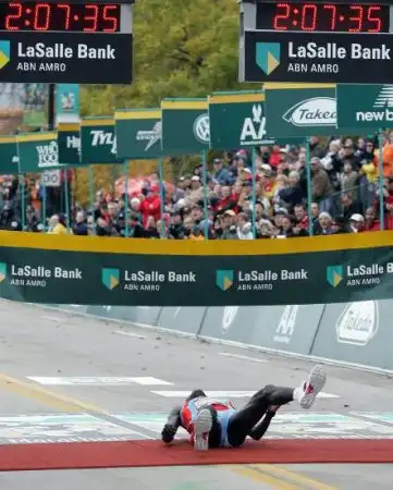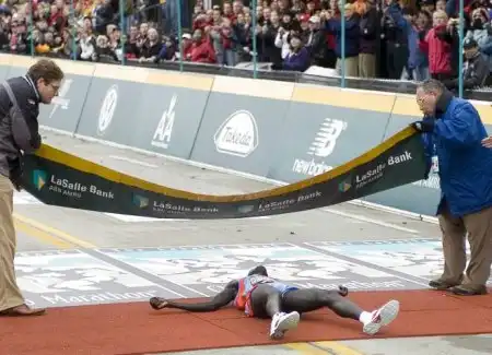 Победитель марафона в Чикаго кениец Robert Cheruiyot проведет ночь на больничной койке. Вчера во время финиша бегун поскользнулся на покрытии финишного створа и упал. Сильно ударившись головой, Роберт пролежал на месте падения несколько минут и покинул место состязания в коляске. По словам врачей спортсмен не помнит момента падения и первое что Роберт спросил, ожидая "скорую помощь", выиграл ли он марафон?